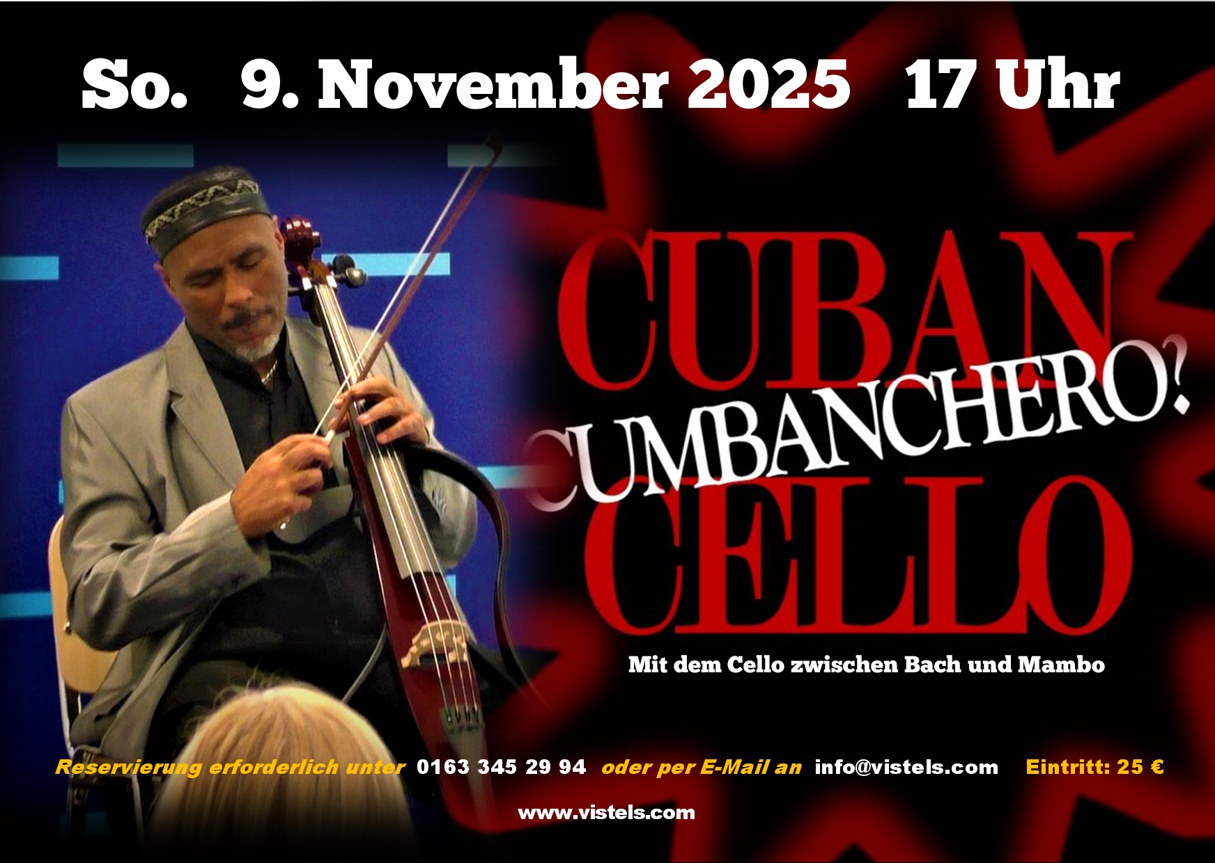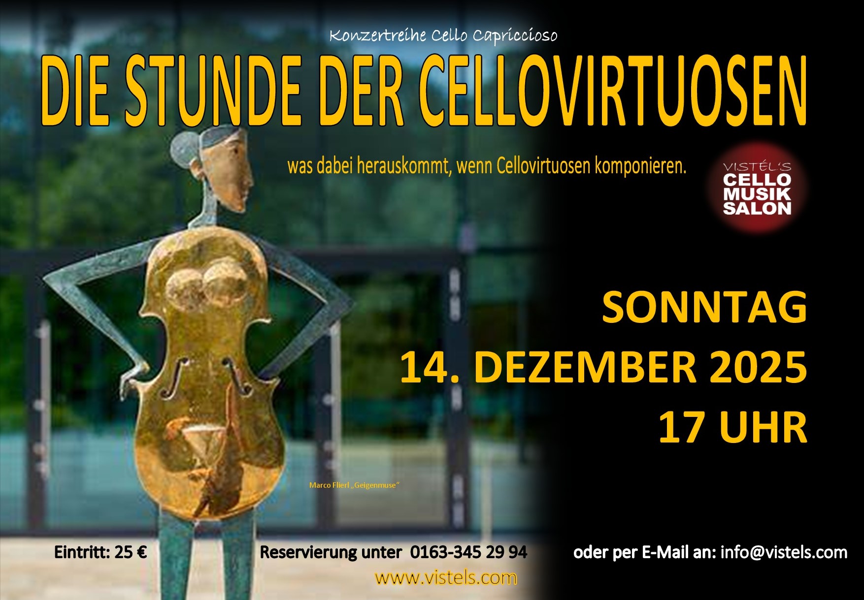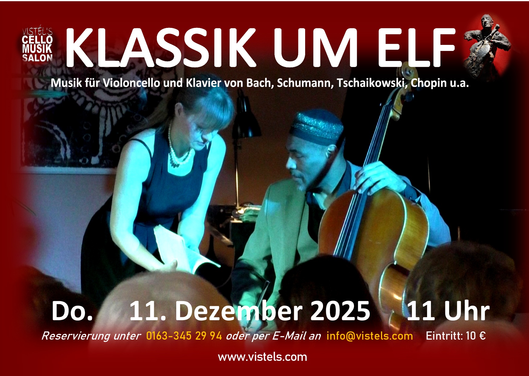 VISTÉL'S CelloMusikSalon Leipziger Str. 61, Berlin, DeutschlandCellomusik aus Estland, Finnland, Polen, der Schweiz u.a. Einlass und Kasse: ab 18.30 Uhr / Konzertbeginn: 19 Uhr / Eintritt: 25 € / Anmeldung unter + 163 345 29 94